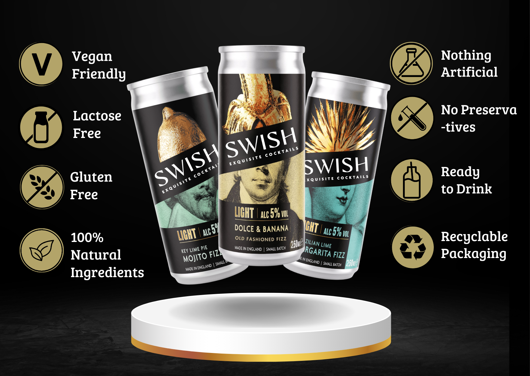 SWISH is disrupting the pre-mixed cocktail market by offering top bar quality cocktails, with premium ingredients all in the convenience of a can.